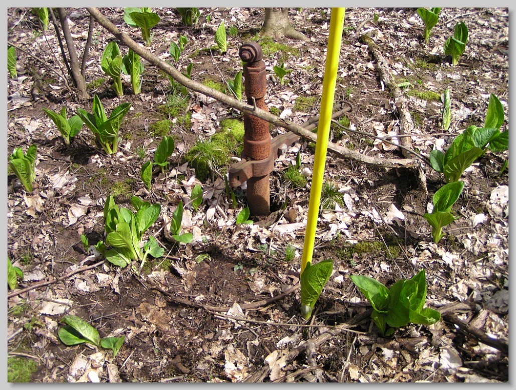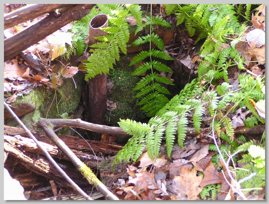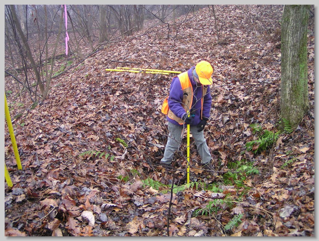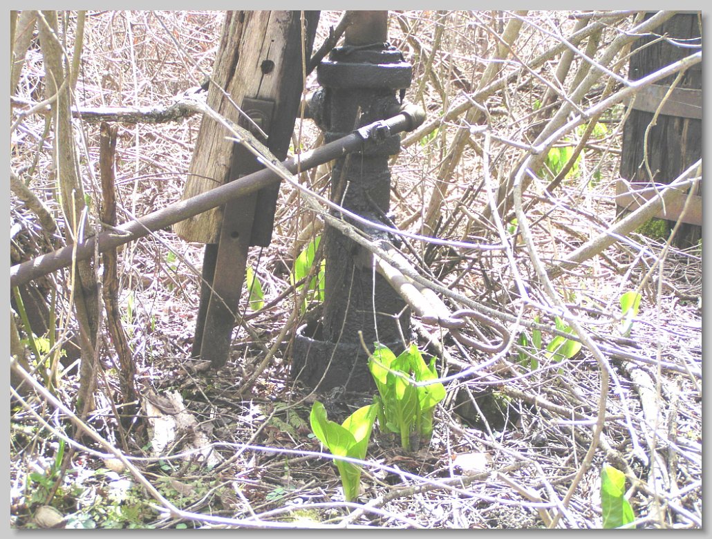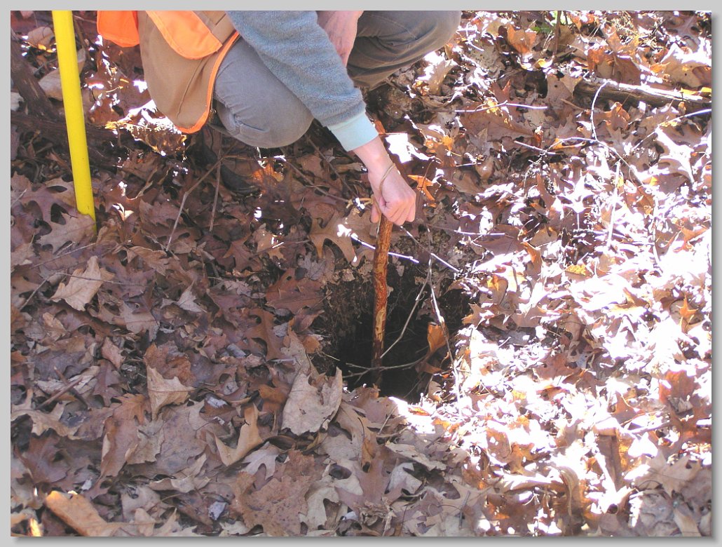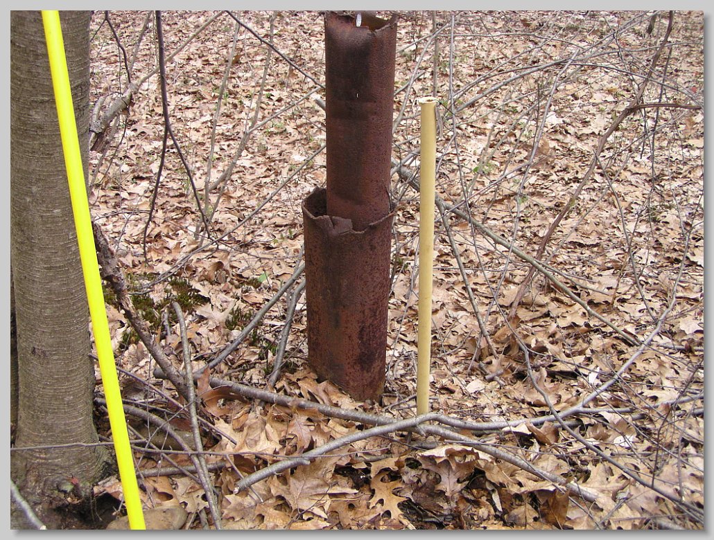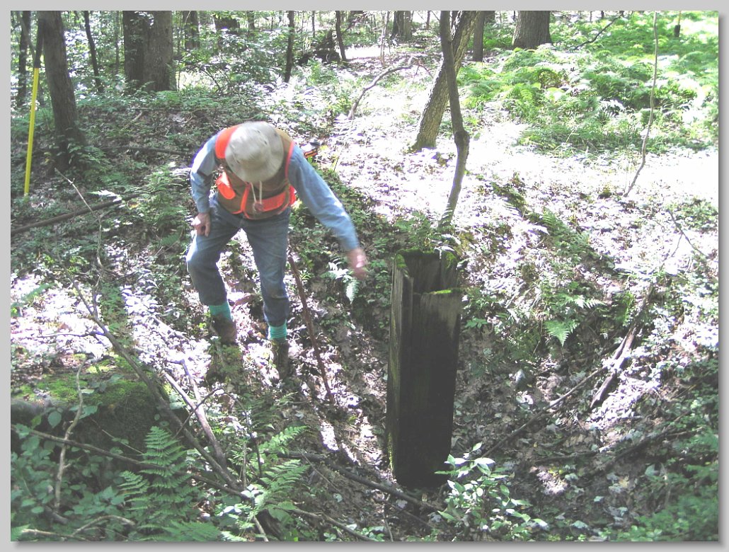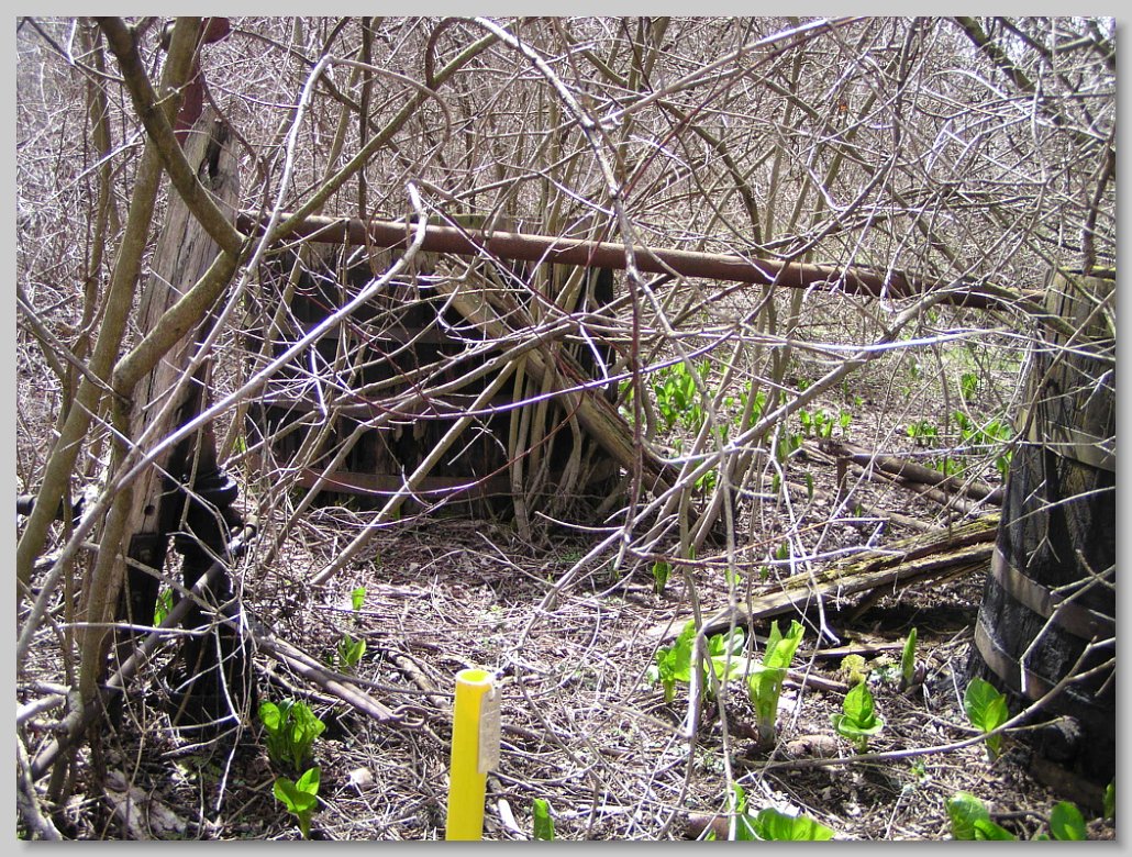 Large depression with no vegetation. An indication that gas and oil are leaking from well.